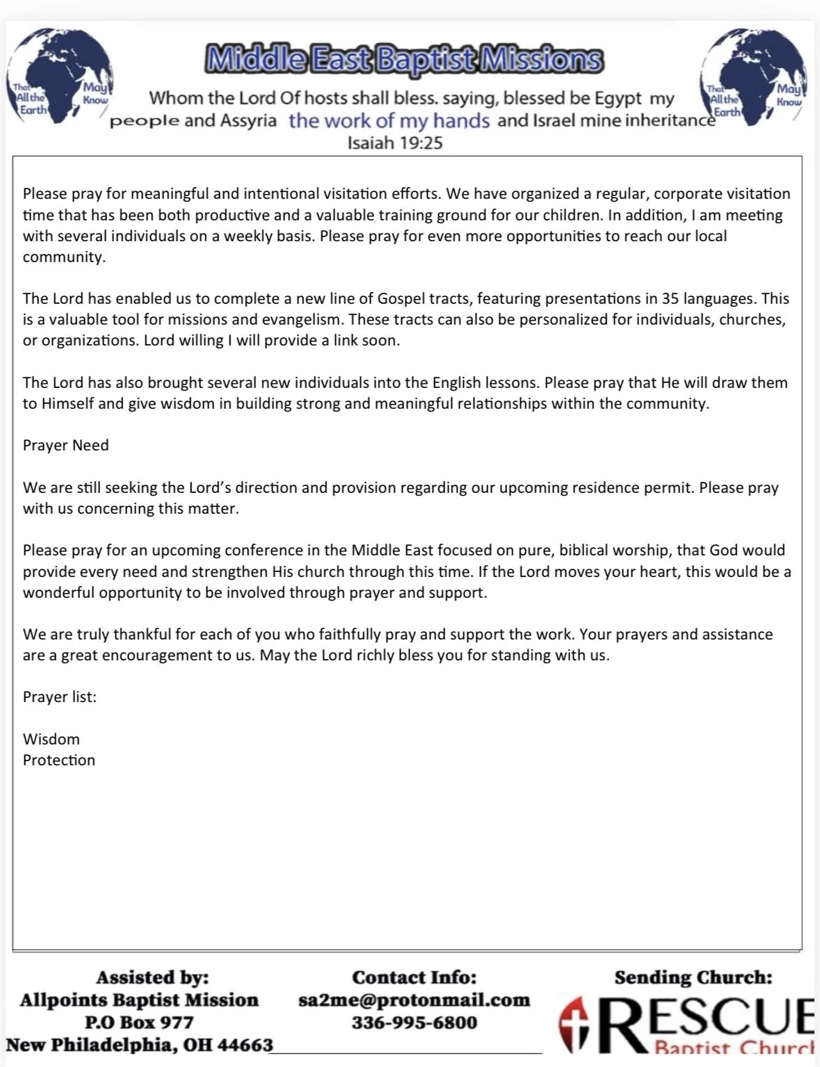 We have set up a special fund. It is the Gift of Hope Fund through AllPoints Baptist Missions. The link to the giving page is found on the APBM website.